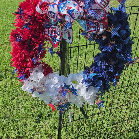 Handmade Patriotic Wreath with Stars and Flowers | Red White and Blue 4th of July Door Celebrate Summer